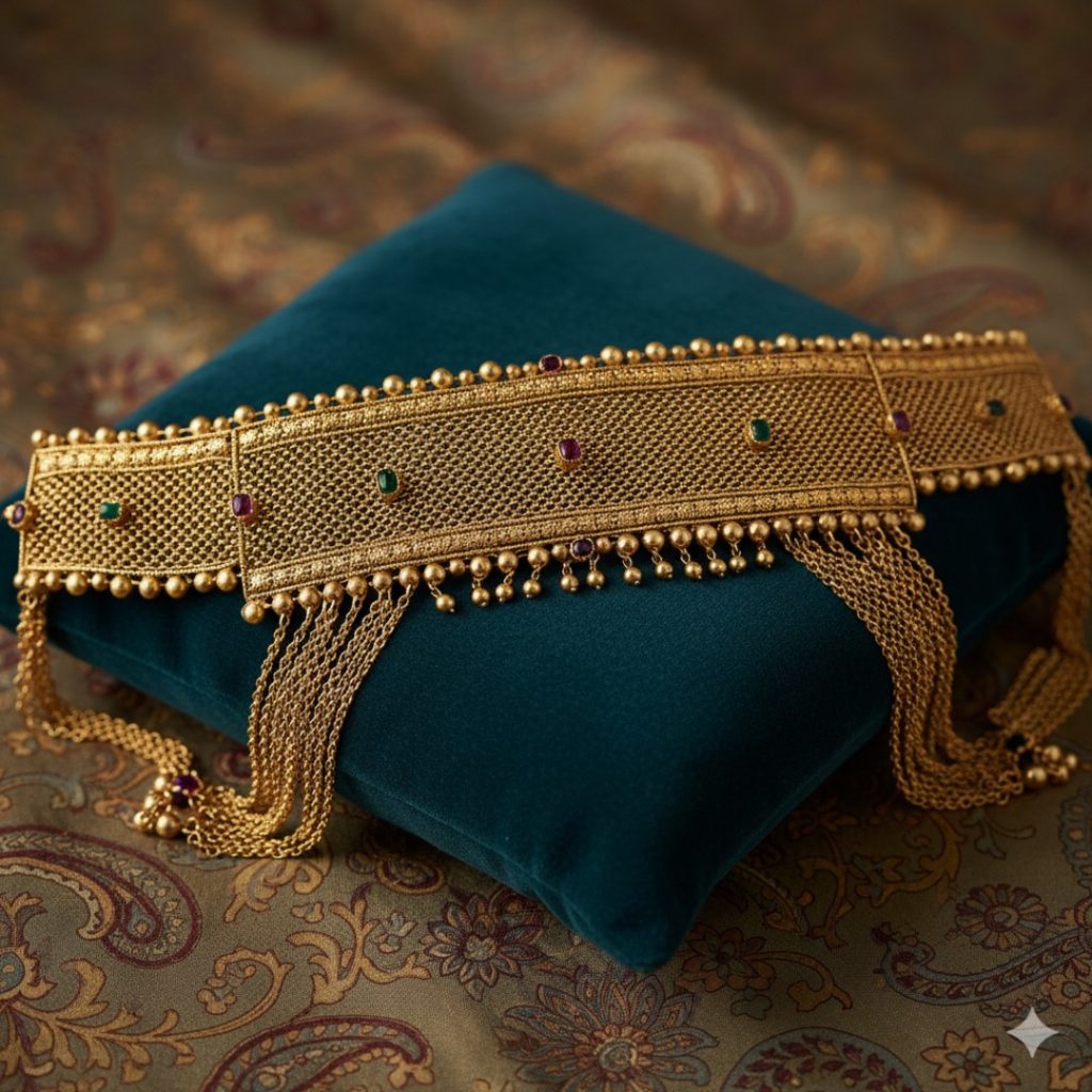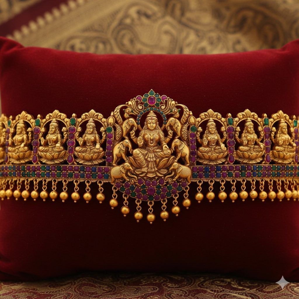 - The Design: A broad, flat belt featuring the eight forms of Goddess Lakshmi.