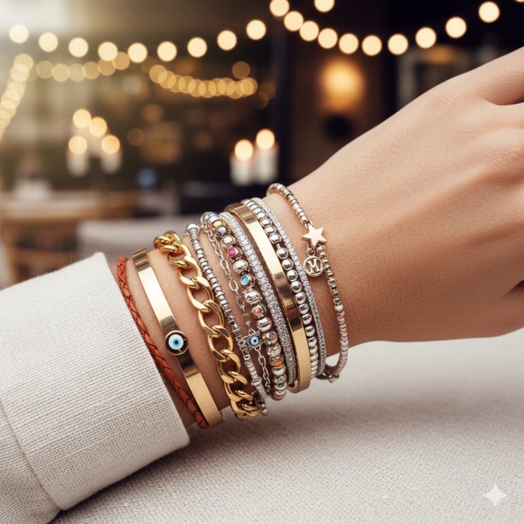 - Layer 2: A soft, flexible chain bracelet (like a tennis bracelet).