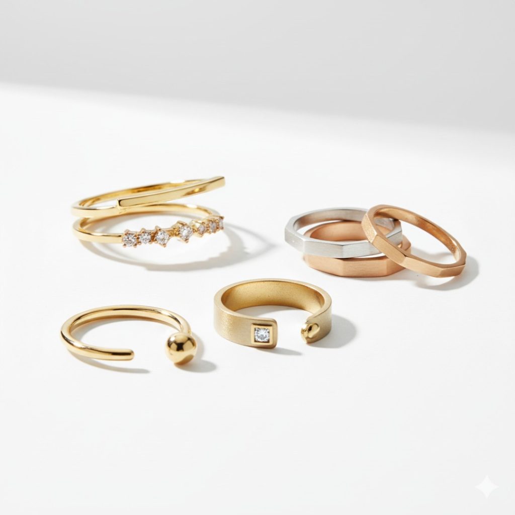 - The Trend: Open Rings (where the ends don’t meet), Hexagonal Bands, and Double-Finger Rings (a bar that goes across two fingers).
