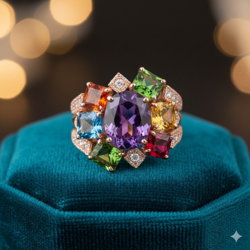 - The “Navratna” Remix: The traditional nine-gem style, but set in modern, geometric open-work settings rather than heavy traditional frames.
