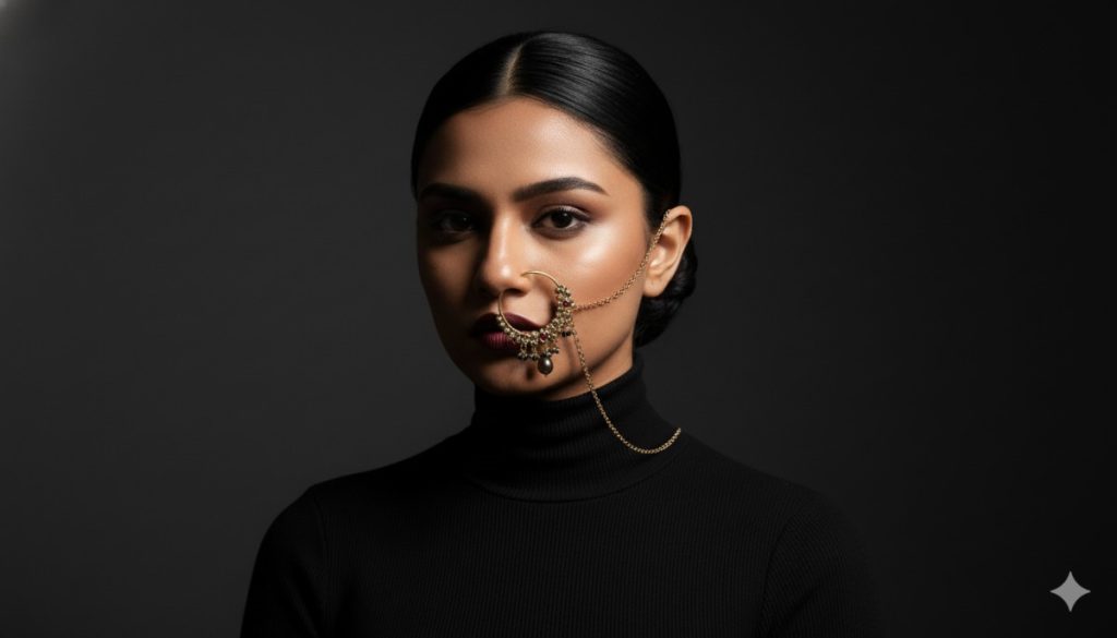 Today, walking into a coffee shop in Mumbai or Bangalore, you are just as likely to see a gold nose ring paired with a crop top and ripped jeans as you are with a Kanjeevaram. Thanks to Bollywood icons like Deepika Padukone (in Piku) and the global “Boho-Chic” movement, the gold nose ring has become the ultimate symbol of the Modern Indian Woman.