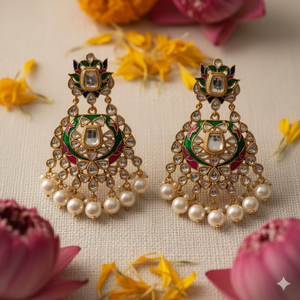 - The Outfit: Wear a high-neck blouse or a boat-neck silk kurta. Since your neck is covered, the heavy earrings frame your face beautifully.