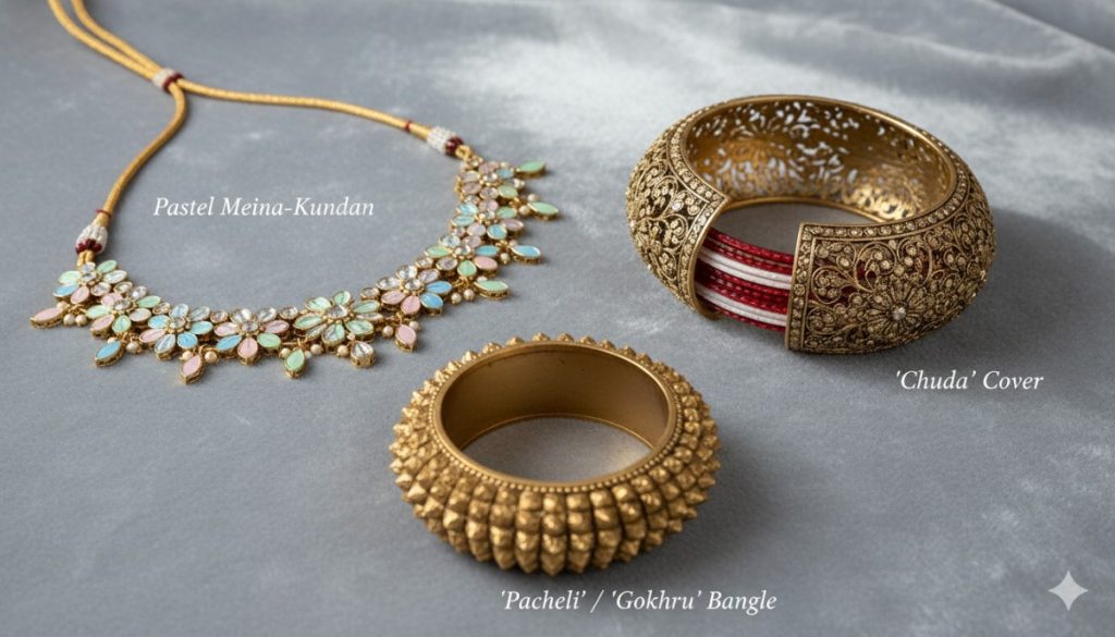 The Pastel Meena-Kundan&The “Chuda” Cover&The “Pacheli” or “Gokhru” Bangle