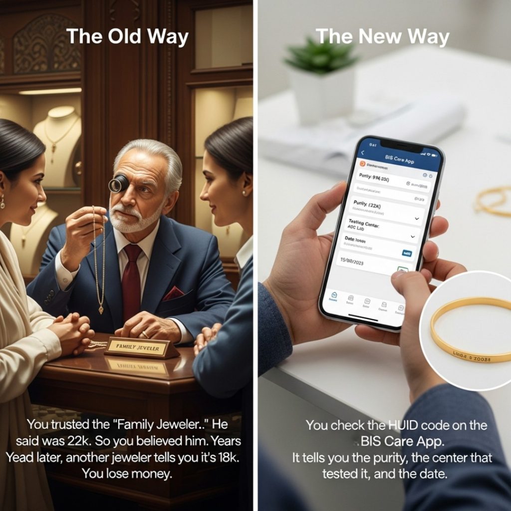 - The New Way: You check the HUID code on the BIS Care App. It tells you the purity, the center that tested it, and the date.