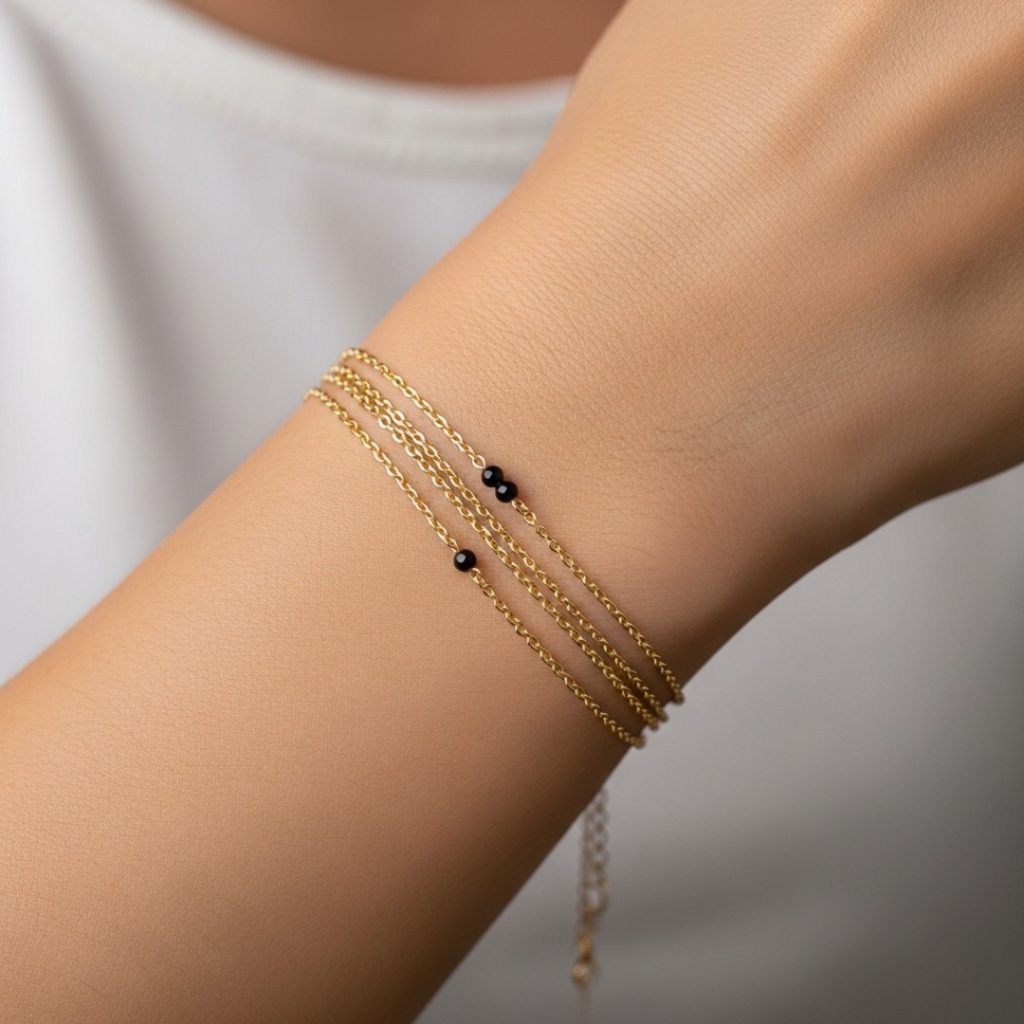It features the sacred black beads and a small diamond/gold wati, but it sits on the wrist instead of the neck. It allows you to honor your marital status without compromising your neckline for western outfits.