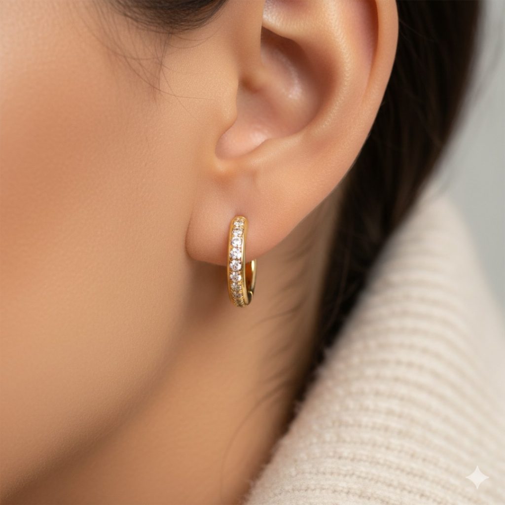 • The Design: Small, thick hoops that “hug” the earlobe tightly.
