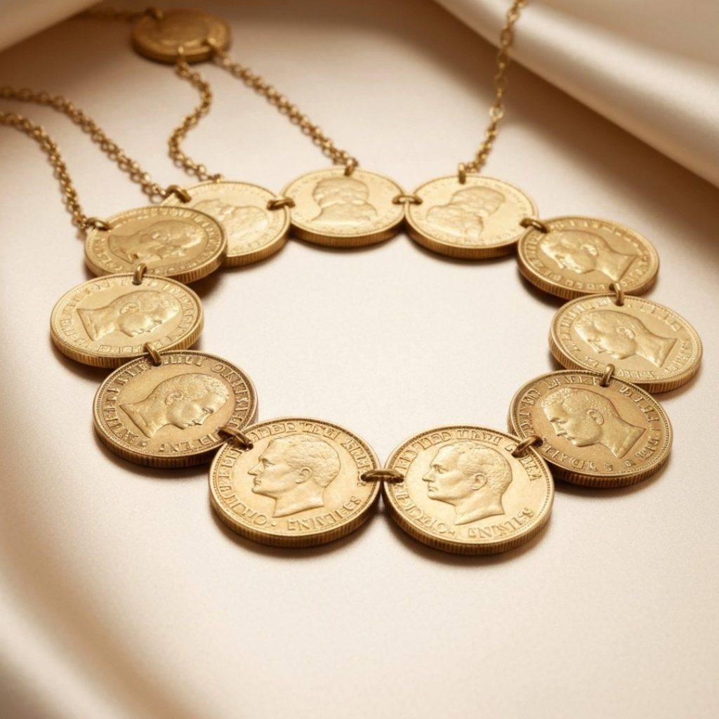 - The Design: A necklace made of gold coins (Ginnies) strung together.