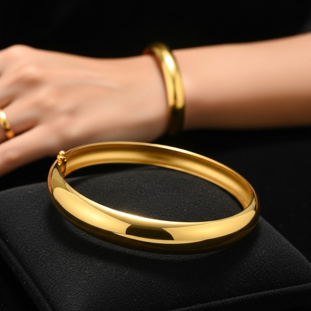 - The Design: A simple, round or semi-round solid gold bangle (Patla/Kada) with a smooth finish.
